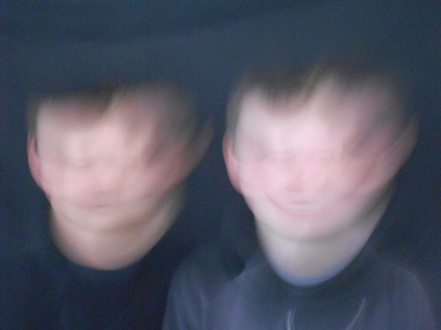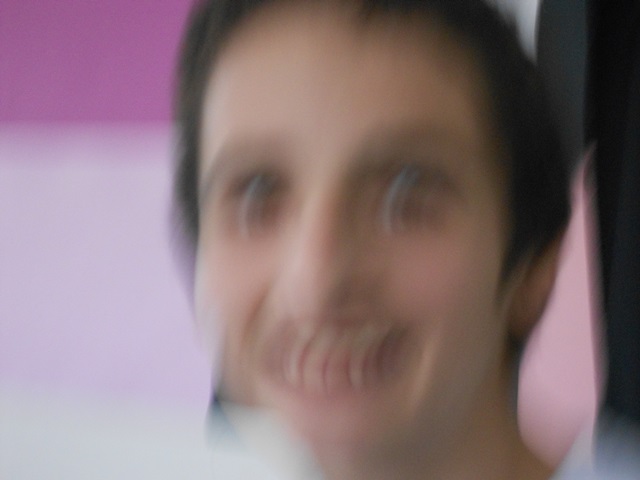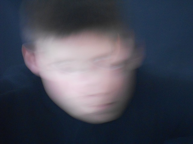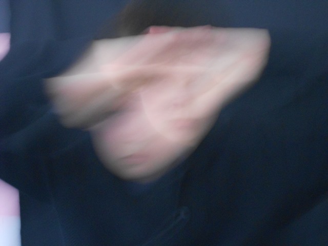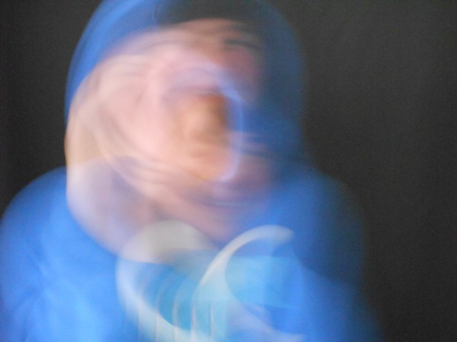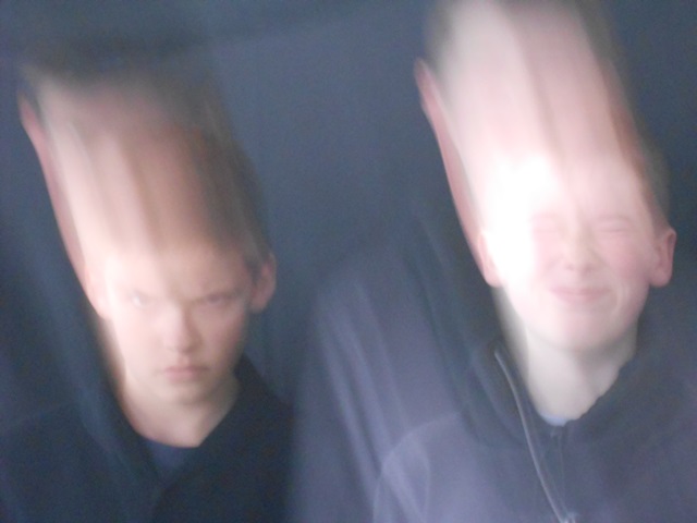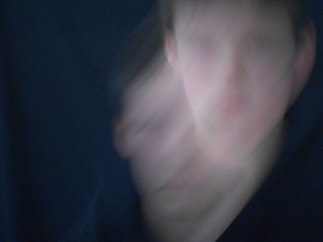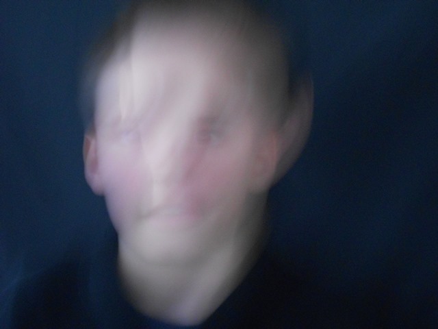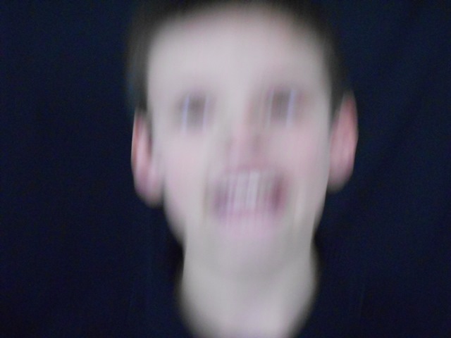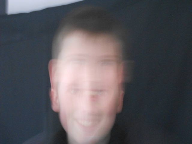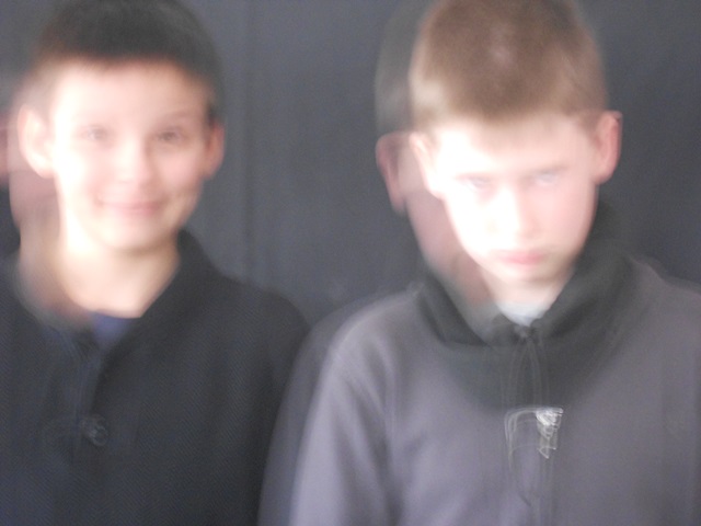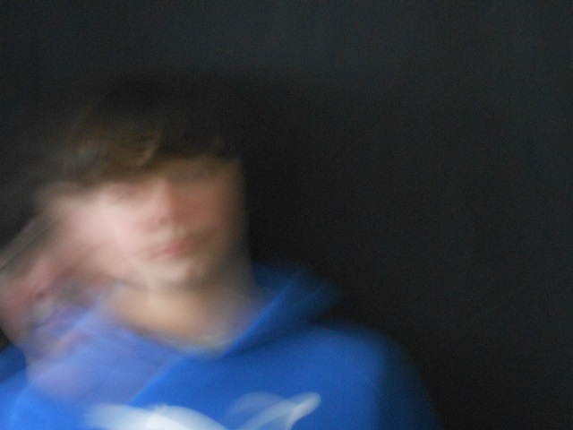 Je n'ai plus besoin d'intervenir pour leur demander de ne pas chahuter. Les élèves sont tout simplement dans leur travail. Plusieurs images qu'ils réalisent sont alors proches de certaines peintures de Francis Bacon. Aussi, je leur montre plusieurs portraits réalisés par l'artiste, la comparaison les enchante et très satisfaits d'eux, c'est avec plaisir qu'ils se remettent au travail. La prise de vue devient alors très technique, de nombreuses images ne sont pour eux pas réussies car les effets ne les intéressent pas, attestant alors de leur capacité à s'auto-évaluer. Différentes façons de bouger l'appareil photo sont expérimentées, des mouvements saccadés de haut en bas, en faisant des ronds dans l'espace, en le bougeant de droite à gauche. Des essais avec deux modèles sont réalisés, un sweet bleu est utilisé...