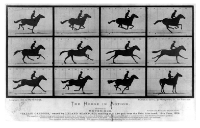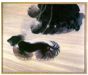 | Edward Muybridge , Chronophotographie, 1878 | Giacomo Balla , Dynamisme d'un chien en laisse, 1912 |