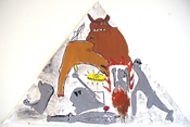 - implication du corps de l'auteur dans l'oeuvre en cours d'élaboration (grands formats, postures, gestes, occupation de l'espace)