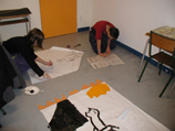Auparavant, les élèves avaient très peu travaillé sur des supports dépassant la taille d'un format raisin, c'était donc l'occasion d'expérimenter de plus grands formats même si la salle ne permet pas de travailler avec de très grands supports et une classe entière.