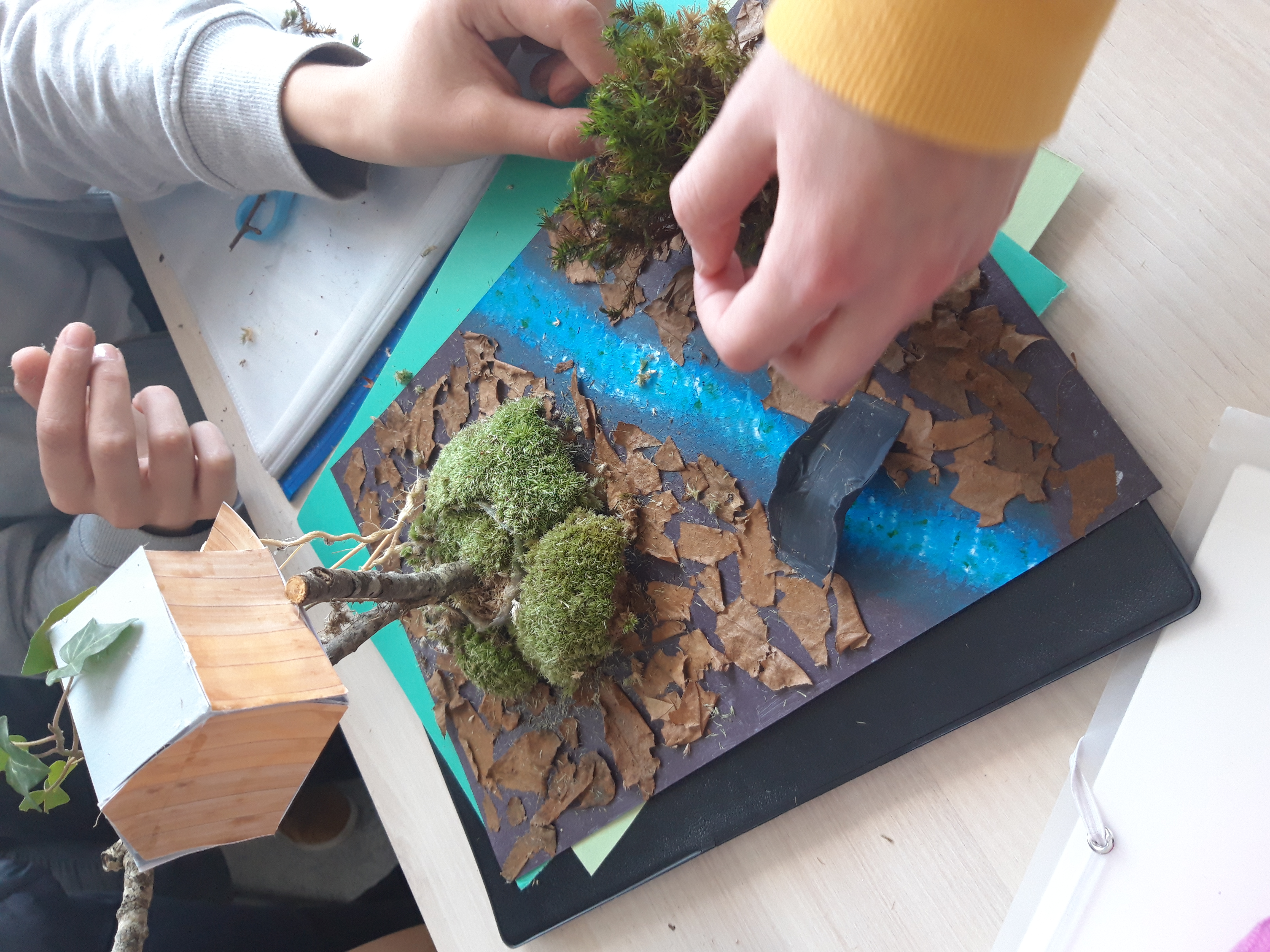 Les élèves ont ramené des matériaux de qualités et travaillent le champ des pratiques tridimensionnelles, sculpturales et architecturales. Ils recherchent des gestes, outils et supports afin de réaliser leur projet. cette question d projet permet de se confronter au passage d'une idée initiale à la production finale, en prenant en compte les contraintes techniques mais aussi méthodologiques, tout en étant attentifs à l’inattendu.