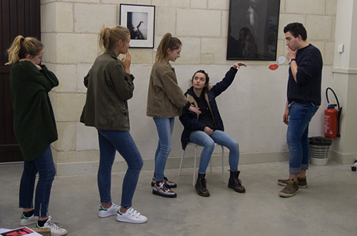 Le travail s'est poursuivi avec l'intervention auprès des élèves d'Aïda Bazaz, ancienne élève du lycée Joachim du Bellay aujourd'hui professeur de danse et chorégraphe, pour aboutir au montage d'une exposition d'œuvres de l'Artothèque relatives au corps et à la danse, et choisies pour leur capacité à établir des correspondances entre les arts.