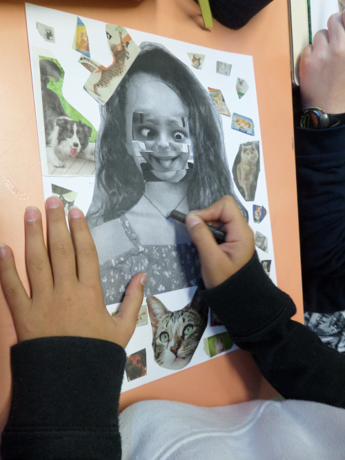 Les élèves poursuivent la réflexion ainsi amorcée par différentes formes de pratiques plastiques: sélection d'images dans des journaux, revues, publicités choisis et mis à leur disposition selon une passion, une couleur... et portraits photographiques en utilisant les appareils numériques à disposition.