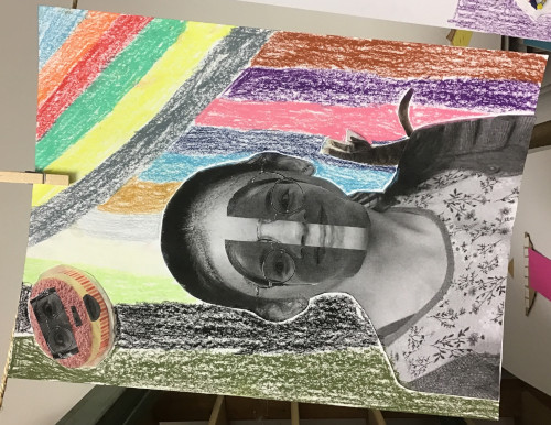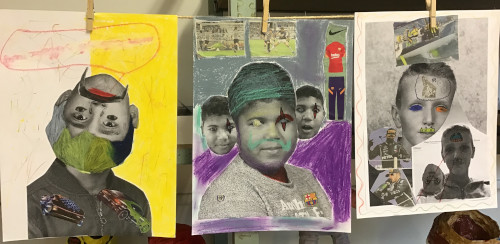 Le contexte particulier de cette rentrée 2020, "masquée" interroge quant à l'image de cette partie du corps qui définit notre identité. Le besoin de se "présenter" aux autres s'est révélé d'autant plus important que celle-ci est dorénavant en partie cachée. Se donner à voir tout en jouant de son image, en prenant en compte divers éléments - trois portraits photographiques, des images sélectionnées et découpées issues de différents supports - permettra aux élèves de questionner la place du spectateur, la réception de leur production tout autant que la notion de représentation.