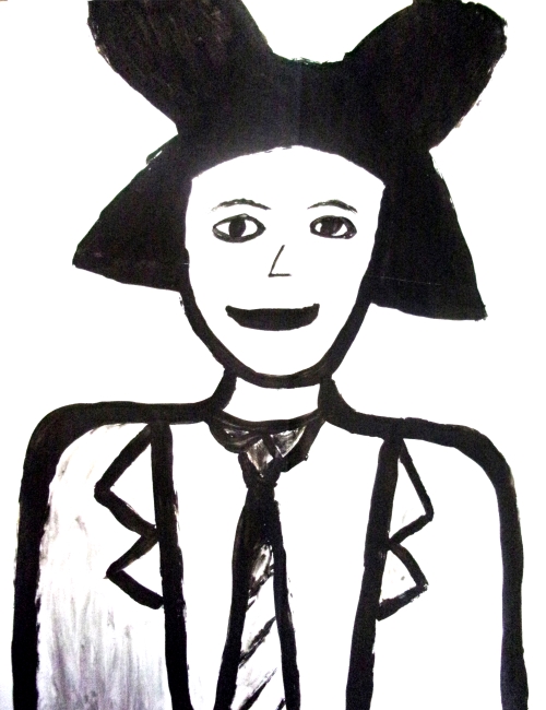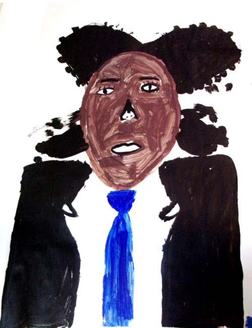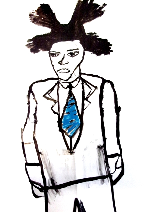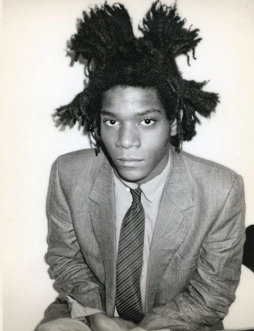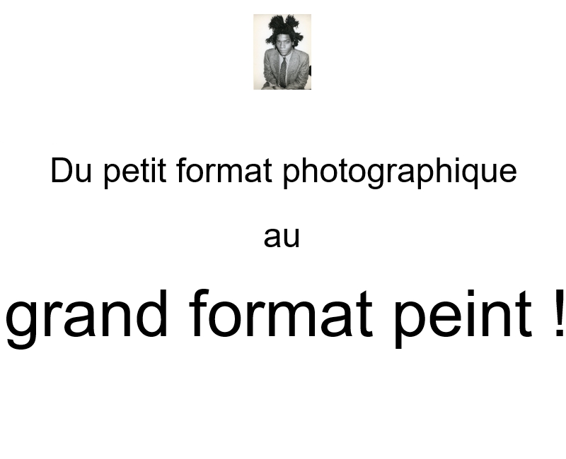 Le portrait photographique de Jean-Michel Basquiat, réalisé par Andy Warhol, est bien évidemment regardé et travaillé.