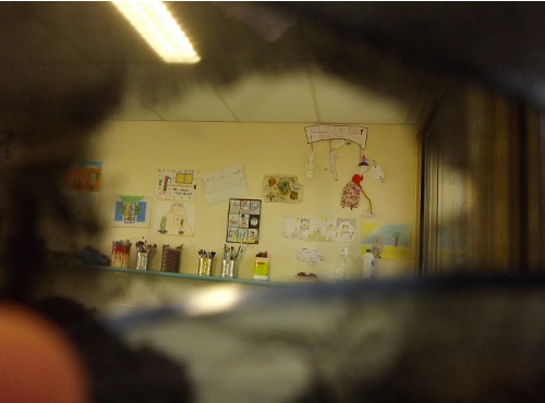 A la suite d'une réflexion autour du projet U-Rev, les élèves de 5è ont réalisé des photos de la salle d'Arts Plastiques. J'ai fait le constat que les élèves avaient photographié la salle, mais avaient-ils réellement pris conscience de ce qui entrait dans le champ de leurs images ? Lors de la verbalisation nous avons constaté qu'ils avaient effectivement choisi ce qu'ils photographiaient « au centre » de l'image mais n'avaient pas tenu compte de ce qui apparaissait sur les « bords », ni de la manière dont ils « coupaient » l'image (dans le choix du cadrage). D'où l'idée avec une autre classe de cibler ou resserrer la demande sur le cadrage et le recadrage (dans la photo elle-même) par le biais de l'encadrement. Moyen aussi de leur faire discerner le cadre de l'objectif du cadre objet.