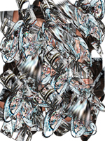 Les élèvesont de suite repéré deux types de réponses : - Celles où l'image produite était devenue "abstraite", assemblage de formes et de couleurs sans autre but précis que de satisfaire l'œil. Les photos de départ étant devenue "matière" les élèves disent s'être amusés à répartir les masses colorées pour obtenir un "effet" qui leur plaise.