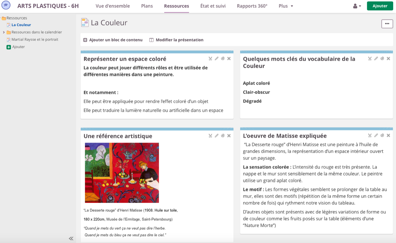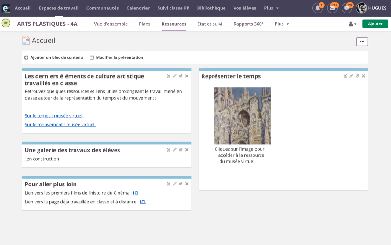 L'ENT privé permet de différencier les espaces de travail et leurs contenus pour chacune des classes. Et notamment de faire le focus sur des connaissances à retenir suite à une production réalisée en classe, de créer des questionnaires en ligne.