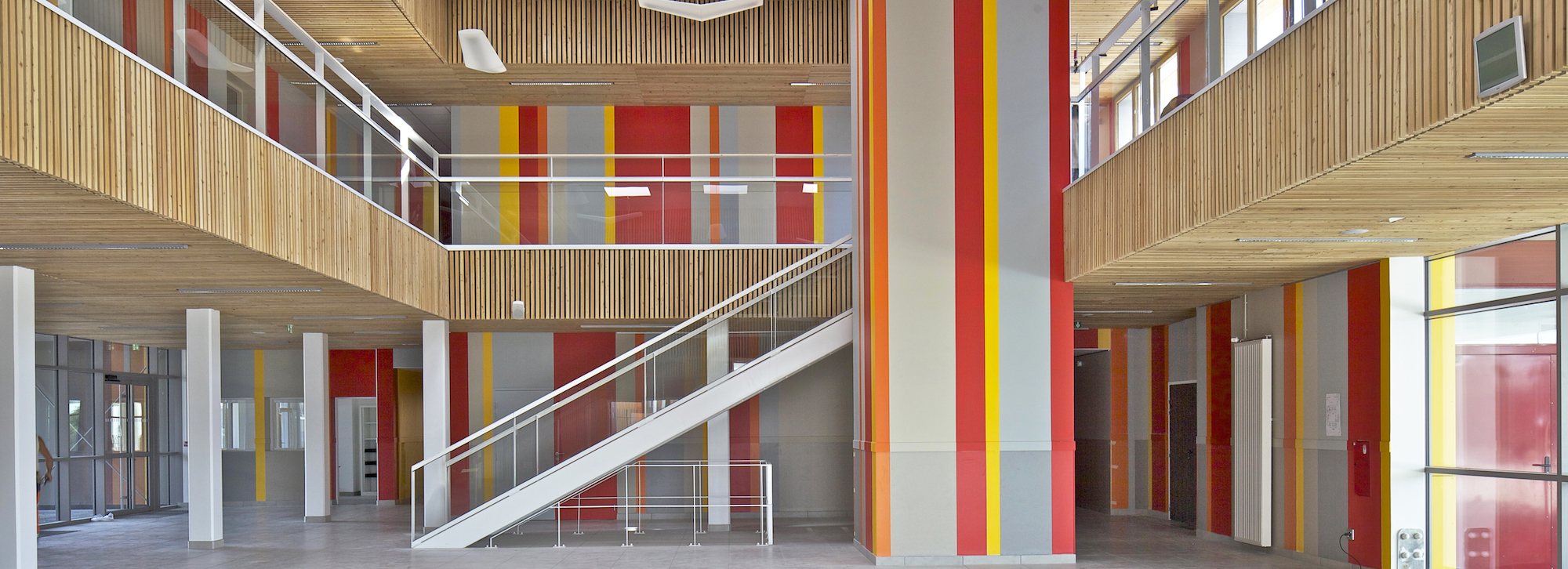 L’assemblage, le dialogue entre la structure et l’enveloppe et le rapport du vide et du plein sont des éléments qui entrent en jeu quand on évoque la construction (en écho à la définition que nous propose Clément Greenberg). Ce questionnement permet d’envisager la dimension spatiale : par l’observation des éléments qui composent l’architecture du collège, et par une pratique exploratoire des élèves.