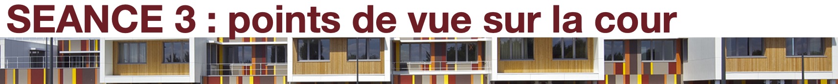 L’objectif est d’amener les élèves à poser un regard singulier sur un espace, qu’ils occupent régulièrement chaque jour (c’est dans cet espace qu’ils devront imaginer une construction en volume lors de la séance suivante).