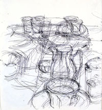 ![]() nature morte au pichet, stylo bille sur papier, 21x17 cm, 1965 Fondation Giacometti- Lausanne. |