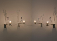 Calder réintroduit le dessin dans l'espace en faisant du fil de fer une trace d'encre en lévitation dans le monde qui l'entoure, mais plus encore, la lumière imprime sur les murs les dessins éphémères qui ne sont que les reflets mouvants de ces créations.