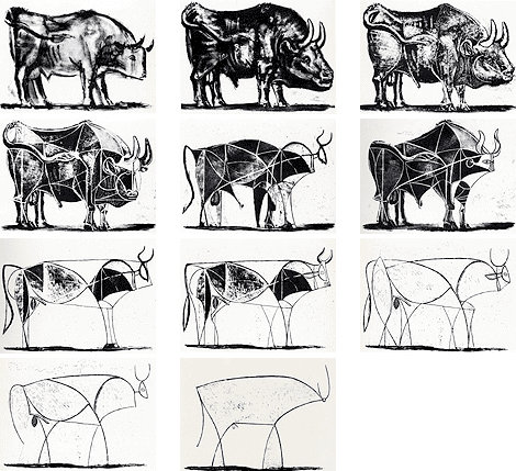 ... C'est Célestin qui a trouvé le mot de la fin : "Picasso, il a fini par là où, normalement, il aurait dû commencer." C'est vrai, seulement pour arriver à son taureau d'une seule ligne, il a fallu qu'il passe par tous les taureaux précédents. Et quand on voit son onzième taureau on ne peut s'imaginer le travail qu'il lui a demandé".
