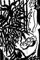 "« Chez Matisse, défend avec ferveur Dominique Szymusiak, le noir est une force, c'est la couleur qui détient le pouvoir de lumière. S'il emploie le noir dès 1900 dans des dessins à l'encre de Chine - autoportraits, passants, livreurs, chevaux, cochers -, sa grande production de dessins au pinceau noir se situe à partir de 1946. Le dessin est considéré comme œuvre en soi. » Marqué par l'estampe chinoise, le dessin au noir n'est jamais abstrait. Matisse a 76 ans. Très peu de lignes, un trait majeur qui enserre l'espace blanc, met en valeur le plein et le vide, les syncopes, les traces d'épaisseur variable : cadre ou gros plan cinématographique modulent les masques et portraits, la calligraphie rythmique de Jazz écrite au roseau pour l'éditeur Tériade ou l'Acrobate, équilibriste croqué comme une tulipe courbée vers le sol, jusqu'à la décoration murale qui élargit avec magie l'espace de la Villa Natacha, à Saint Jean Cap Ferrat."