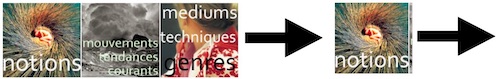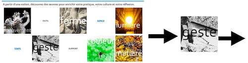 L'accès aux œuvres se fait par trois entrées : notions, mouvements artistiques, médiums.