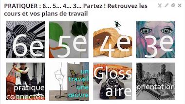Les entrées par niveaux articulent pratique plastique et culture artistique. Elles rendent compte, par exemple des liens qui se tissent entre ce qui se passe dans en classe et dans la galerie d'établissement. L'accès sans disctinction de niveau attise la curiosité des élèves sur les productions de chacun.
