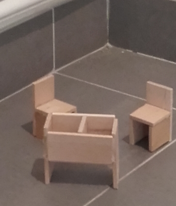 "Notre production est in situ parce qu'elle représente le mobilier qu'il y a dans la galerie lorsqu'il n'y a pas d'exposition. Nous avons représenté le meuble pour les BD et les fauteuils. Le spectateur qui connait notre collège reconnaîtra tout de suite ce que nous avons voulu faire. "