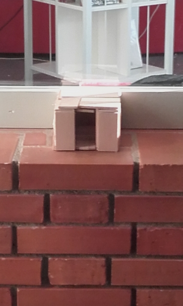 "Nous avons installé notre travail entre les tuyaux de la salle d'exposition. Il y avait un espace vide. Avec plus de temps et de morceaux de bois, nous aurions pu monter encore plus haut: jusqu'au plafond!" Amilcar, Julianne, Kimberlay, Thibault.