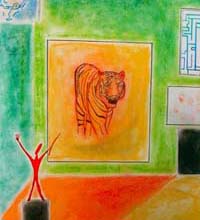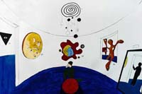 Les élèves ont réalisé individuellement une image (dessinée et/ou peinte). Celle-ci représente un espace fictif, de type galerie d'exposition.