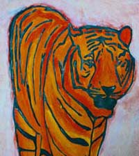Le passage du médium (pastel) de l'image de l'oeuvre réduite à la peinture pour la réalisation finale montre une adaptation aux nouvelles dimensions du support.