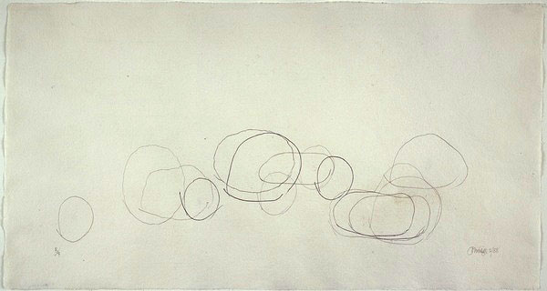 Série "expérimentation plastiques" sur papier, consistant à cerner avec divers outils quinze pierres polies.