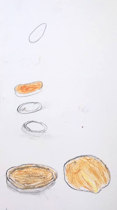 Beaucoup ont dessiné la graine en traçant d'abord un contour noir puis en remplissant l'intérieur en jaune, des tentatives de représentation en volume ont émergées.