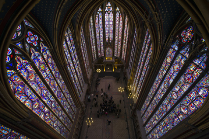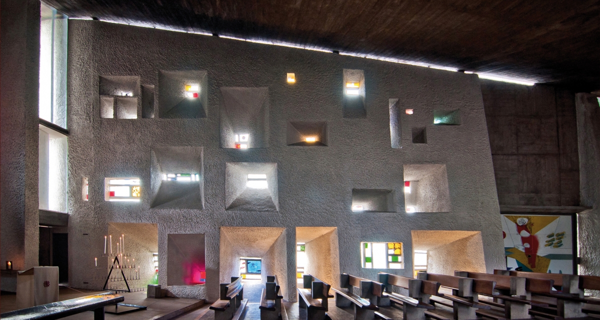 C'est en cherchant à faire rentrer la lumière divine dans les lieux de culte de l'architecture romane que naît la cathédrale gothique. Si c'est une approche conceptuelle de la lumière dans l’architecture, la nature immatérielle de la lumière va pénètrer à travers des vitraux et ses reflets dans l’édifice vont sanctifier et embellir la cathédrale. Le vitrail devient une sorte de filtre entre l’intérieur et l’extérieur, entre Dieu et les hommes. Pénétrée par la lumière, elle transfigure la beauté divine.