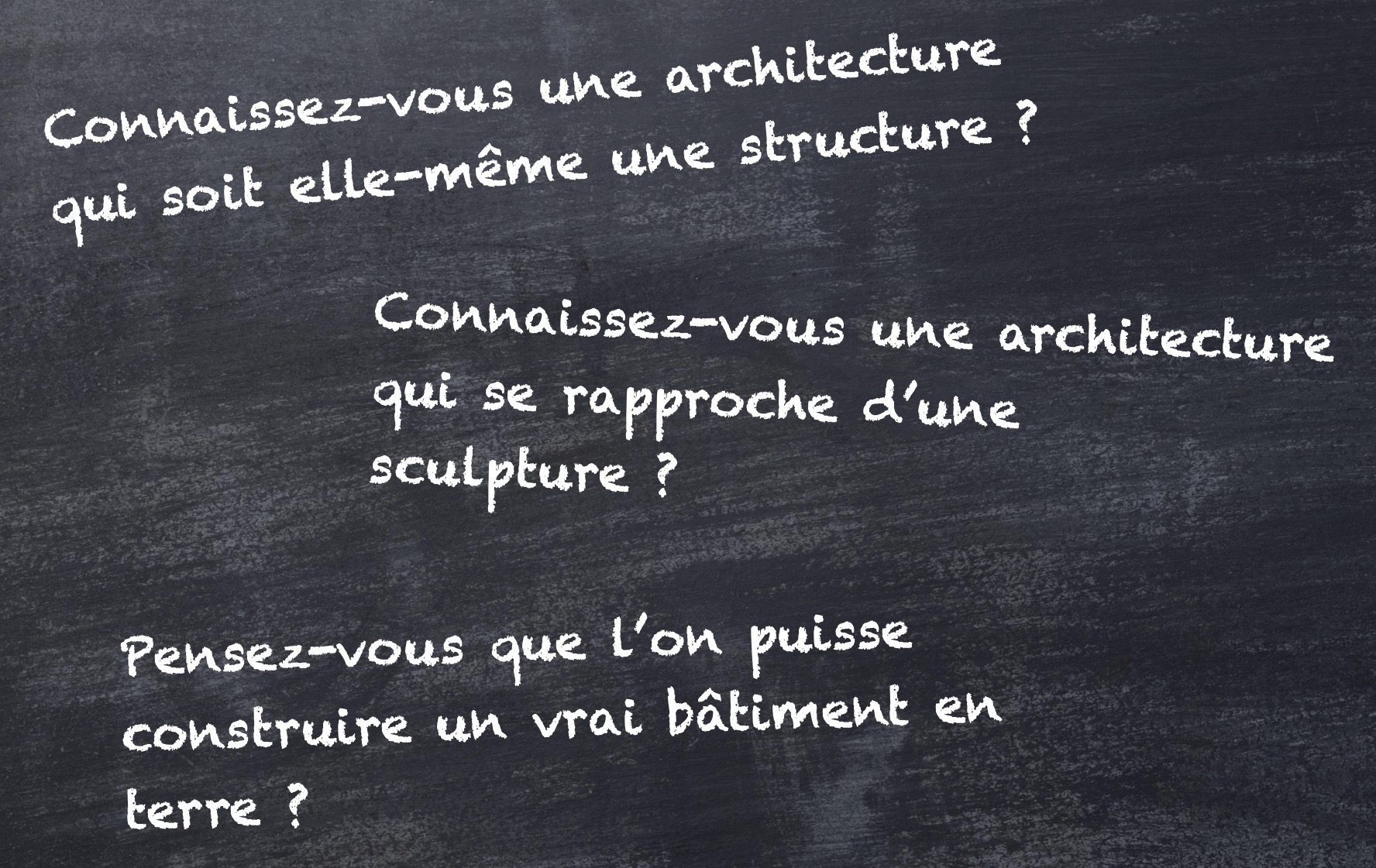 Dans une séance antérieure, la classe a travaillé "une petite architecture originale et surprenante uniquement en papier". A cette occasion il a été défini simplement ce qu'est l'architecture et notamment la nécessité qu'elle soit en trois dimensions (largeur, hauteur et longueur) et qu'on puisse y entrer.