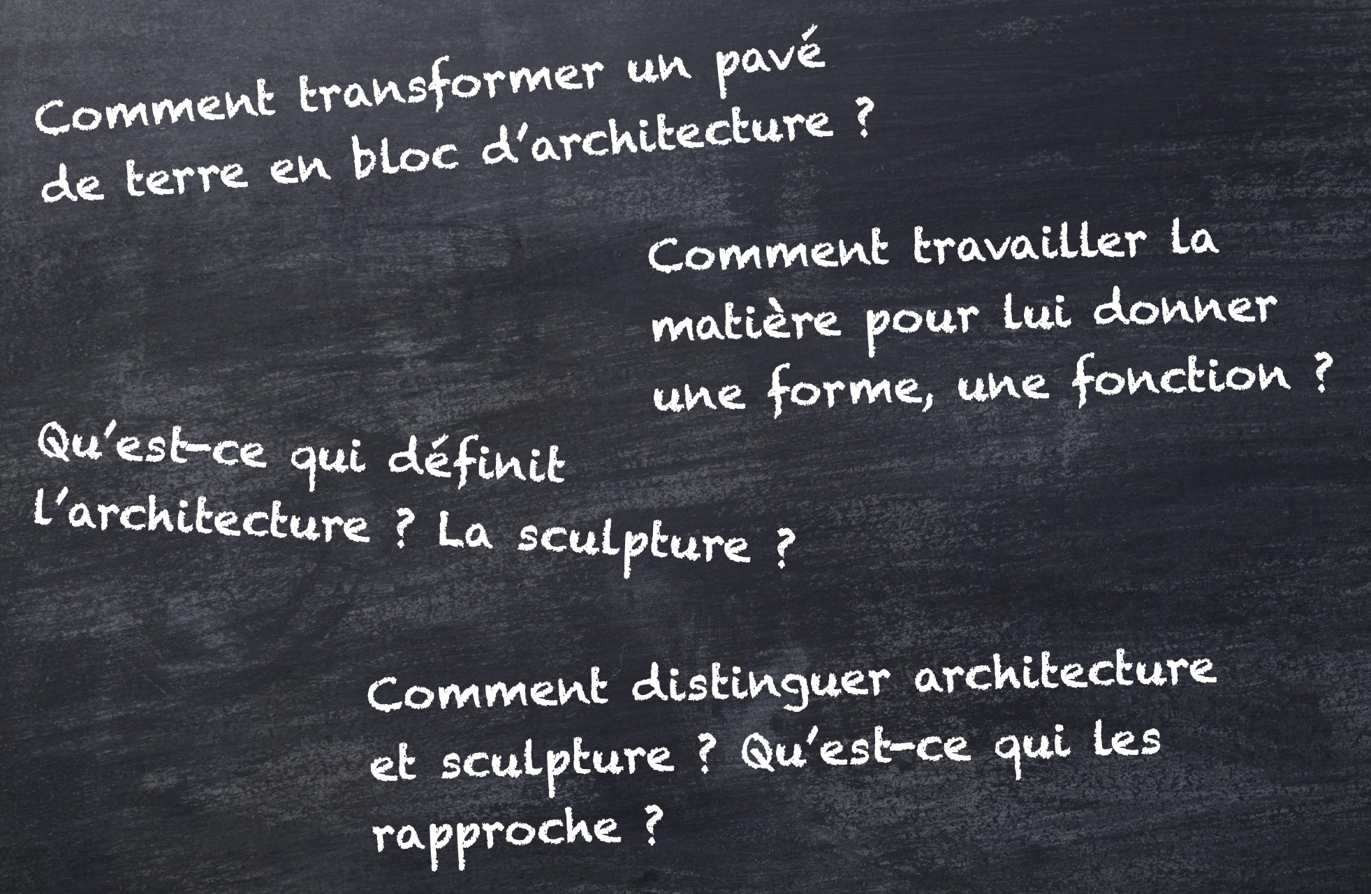 Elle propose aux élèves de s’interroger sur l’espace en 3 dimensions, le travail en volume et en particulier sur l’architecture.