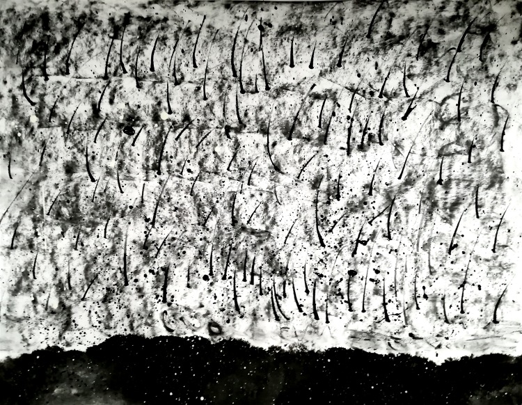Je leur présente trois œuvres dans un ordre précis : une encre de Chine, une peinture abstraite ne faisant pas référence au paysage et une dernière peinture abstraite qui suggère le paysage. | ||||
