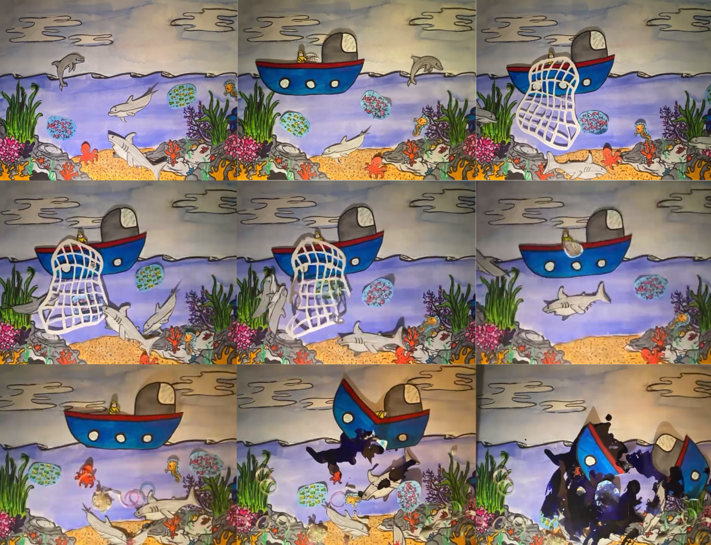 Sous l'océan dénonce dans une animation en stopmotion la pollution et la prédation de l'homme sur l'environnement à travers la surpèche, les déchets déversés dans les océans, les accidents liés à l'homme comme les fuites d'hydrocarbures.