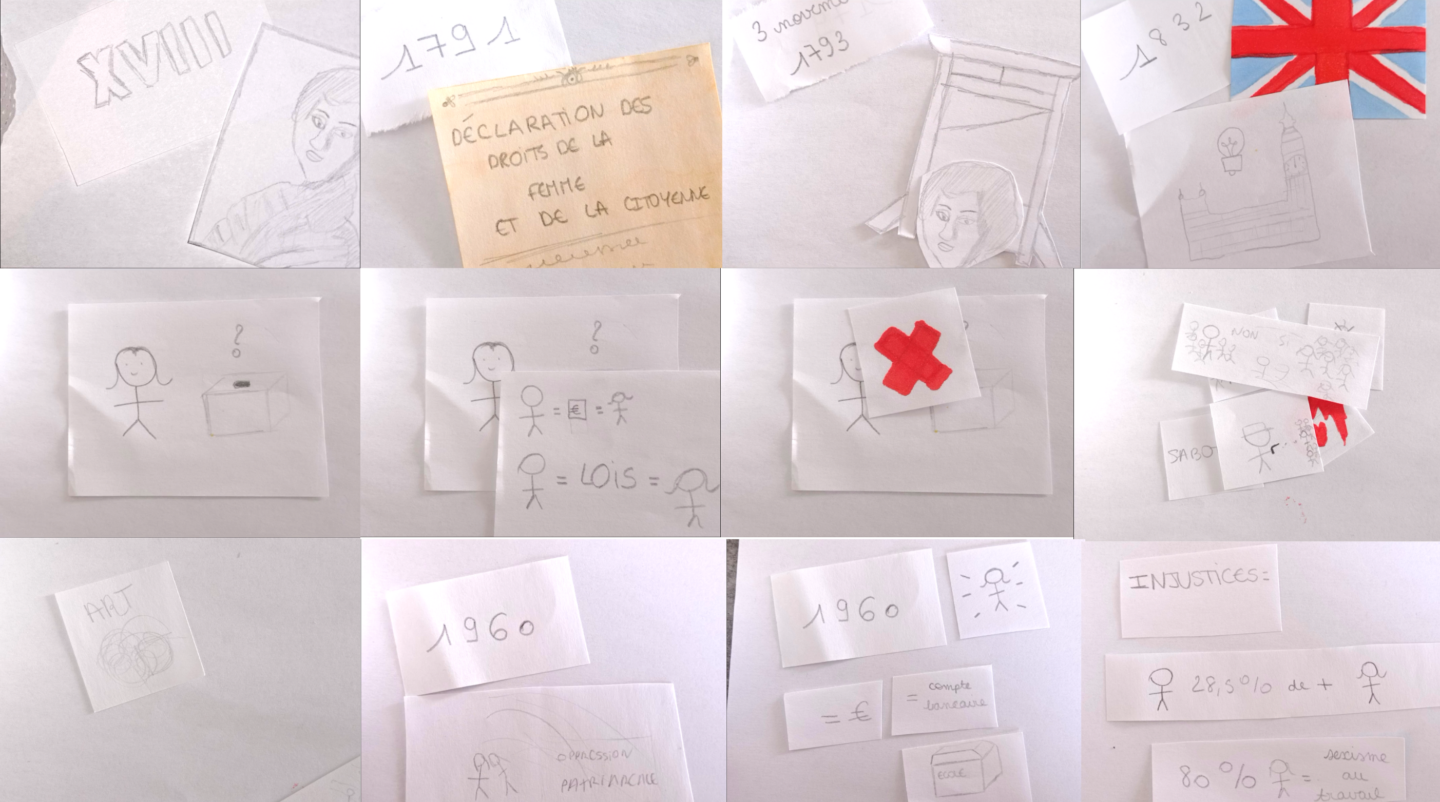 Les droits des femmes dans le monde et l'histoire du féminisme sont racontés par la voix off et par des petits papiers montés en stopmotion.