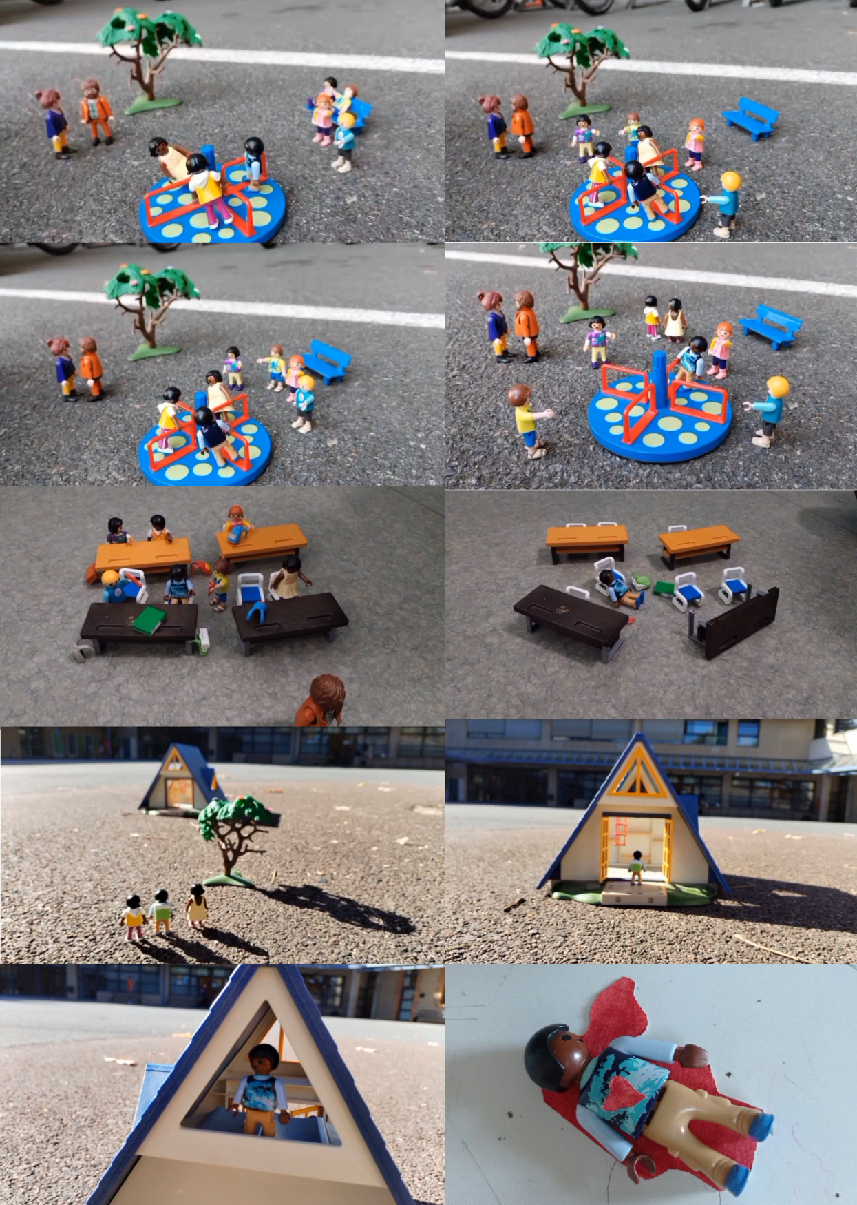 Dans cette animation en stop motion, deux injustices sont dénoncées : les intimidations et le racisme. L'écart entre le caractère innocent des jouets d'enfants et le désespoir de la cible, qui, a la fin, se donne la mort, interpelle.