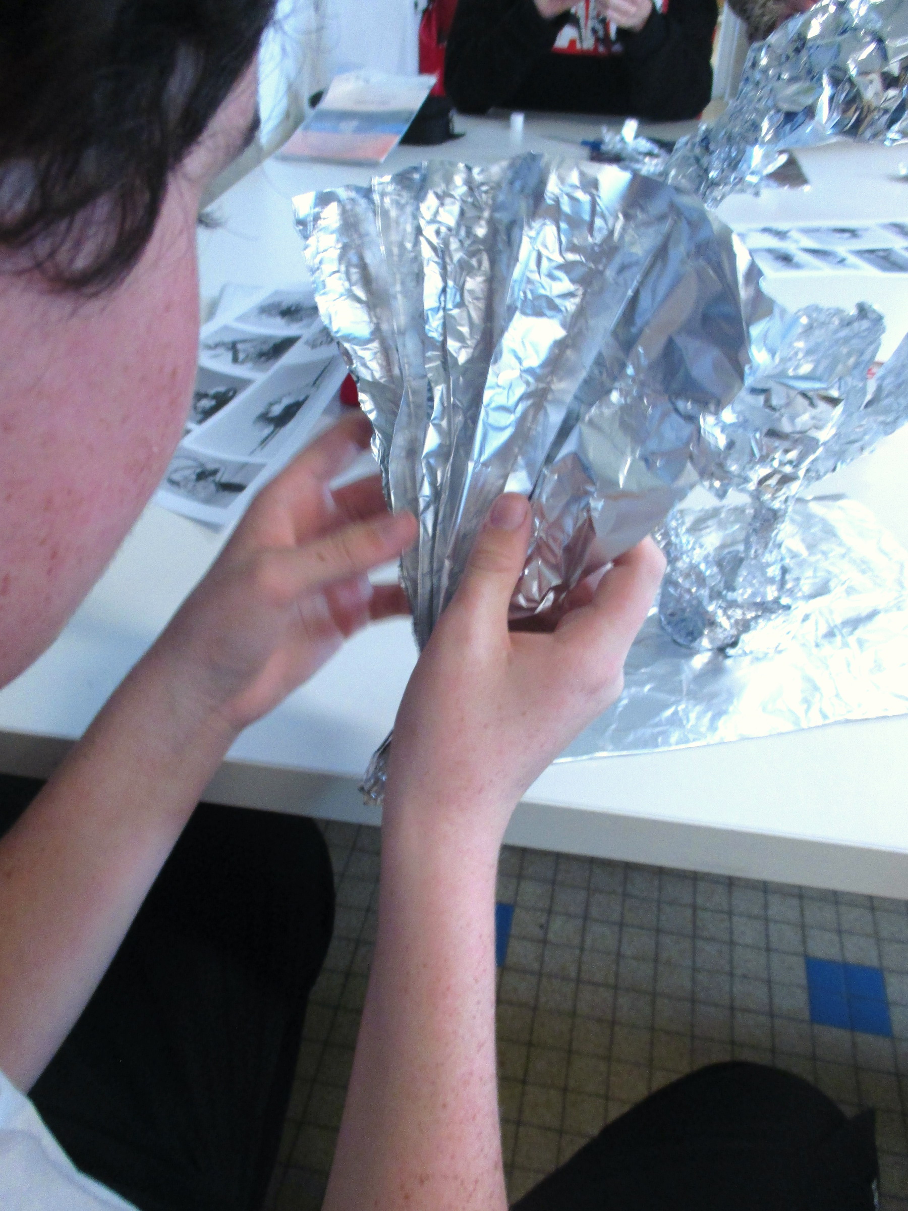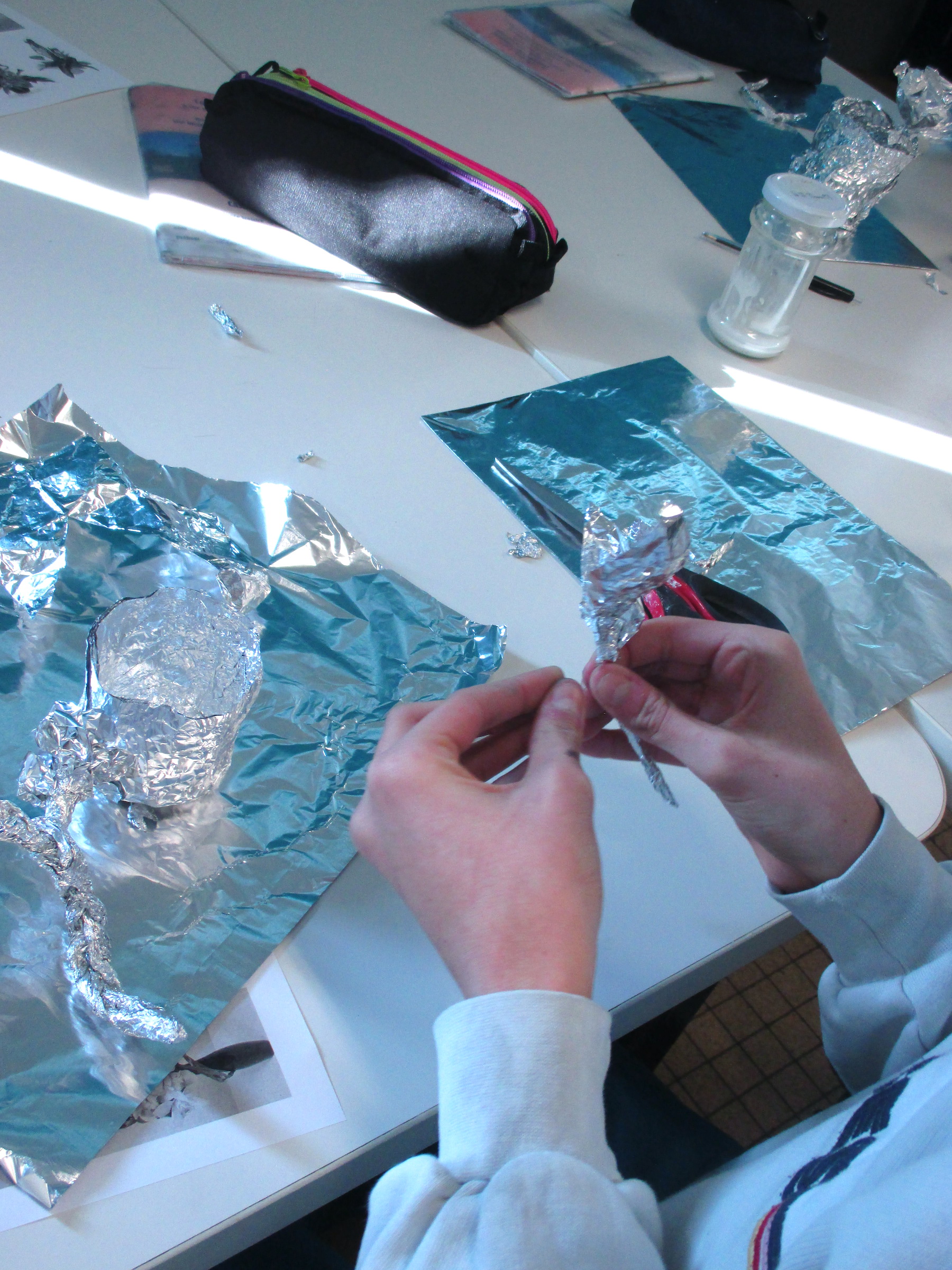 Pour introduire la séquence et les inciter au travail, j’ai disposé sur chaque ilot des rouleaux d’aluminium et la colle liquide.