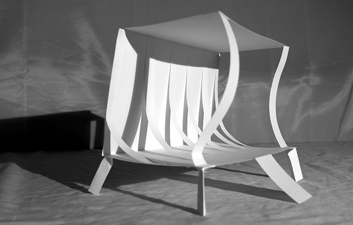 Transformation de la matière, exploitation dans une création plastique du dialogue entre les instruments et la matière en tirant parti des qualités physiques du matériau papier.