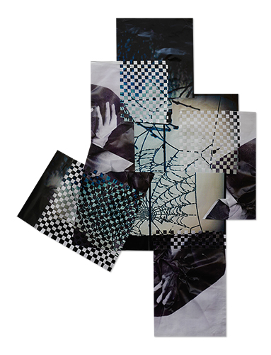 Après avoir étudié et analysé les correspondances et les liens qu'il pouvait exister entre ces deux photographies, nous les avons découpées chacune en quatre parties que nous avons réagencées et tissées entre elles, en donnant à l'ensemble une forme éclatée. Ces deux images fragmentées et déstructurées se rencontrent dans certaines zones tout en conservant ailleurs leur apparence d'origine.