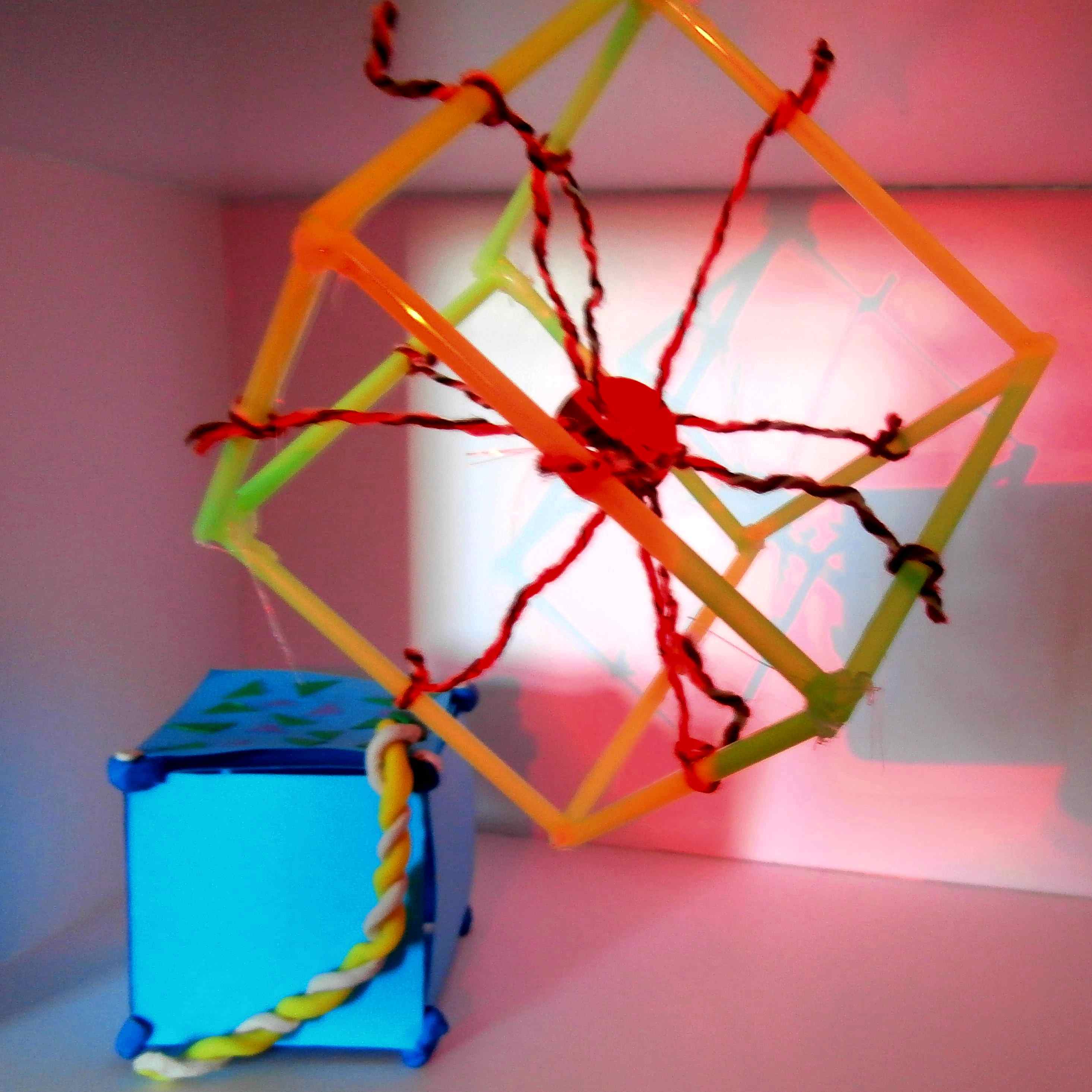 A travers cette proposition, je souhaitais que les élèves ne s'interrogent par sur la forme de leur projet mais privilégient des questionnements autour des qualités physiques des matériaux, des jeux d'espaces, des principes de construction et d'assemblage. Je supposais que les premiers choix envisagés pour la réalisation de l'un des cubes engendreraient à leur tour des moyens plastiques susceptibles de s'y « opposer ».