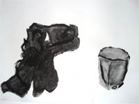 Lorsque l'éponge leur est distribuée, ils sont un moment déroutés par cet outil inhabituel pour eux. La première utilisation qu'ils font de l'éponge est de s'appliquer à dessiner la forme des objets. C'est en commençant à travailler les surfaces que les élèves ont commencé réellement à s'approprier l'outil et à explorer ses diverses possibilités en fonction des effets de matières :