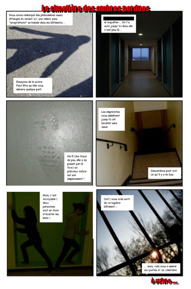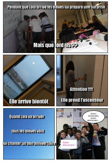 Ensuite, ils ont eu le choix entre plusieurs grilles proposées par le logiciel. Ce premier choix (six images en général, certains en ont choisi huit) leur donne déjà une organisation de page de bande dessinée, qui pour eux s'est révélé être déjà le squelette d' une histoire. L'essentiel de leur travail a a consisté à « remplir » la grille.