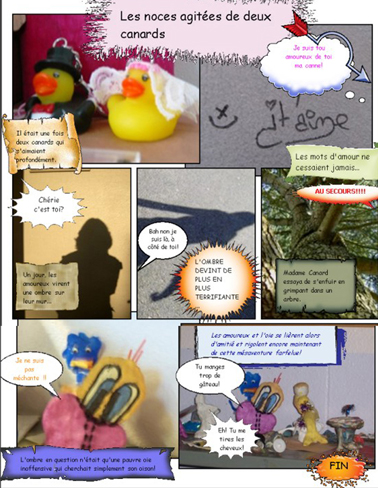 Je leur ai proposé de retoucher les images avec un autre logiciel mais la manipulation de Comic Book Créator impose des contraintes auxquelles certains élèves n'ont pas voulu être confrontés, ce qui fait que beaucoup se sont contentés des images telles quelles. On a retrouvé souvent les mêmes images dans tous les collèges, et dans ma classe c'était très peu varié.