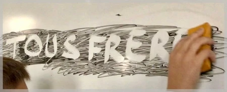 " Pour notre geste artistique, on voit plusieurs mains empêcher le bras d'écrire le mot Liberté. Dans certains pays, la liberté d'expression n'existe pas. Dans notre pays, nous avons la chance de pouvoir nous exprimer comme nous le voulons. "