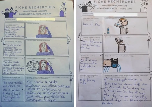Par petits groupes de trois ou quatre, et à l'aide d'une fiche de démarche à compléter, les élèves commencent par s'interroger sur la nature d'un geste banal.