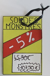 "Pour moi si « Ce que je lis n'est pas ce que je vois » c'est qu'il y a tromperie. Et comme c'était le début des soldes, j'ai eu l'idée de faire une étiquette de prix. Je voulais qu'elle soit le plus vraisemblable possible pour tromper davantage le spectateur."