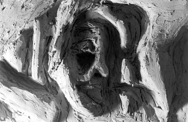 Il est demandé aux élèves de retranscrire cette fois leur photographie sous la forme d'un bas-relief en argile, un bas-relief qu'ils devront ensuite éclairer spécifiquement et prendre en photographie (toujours en noir et blanc). Il leur faut donc réfléchir à des équivalences entre les lumières et les ombres d'une part et les pleins et les creux d'autre part.