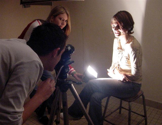 Rapide présentation de la technique photographique dite argentique et du fonctionnement de l'appareil photo. Réalisation de portraits photographiques (pellicule noir et blanc) en éclairant fortement le modèle avec une torche et en jouant avec la position de la source lumineuse (par groupe de 3 : chaque élève est alternativement modèle, éclairagiste et photographe).