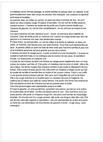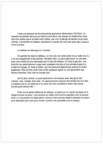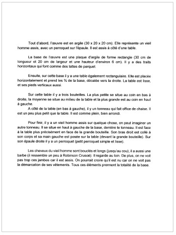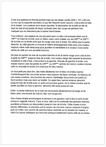 Il leur est demandé d'observer attentivement cette reproduction et de la décrire le plus précisément possible à l’écrit en veillant à prendre en compte l’ensemble des données matérielles et plastiques et en utilisant un vocabulaire approprié.