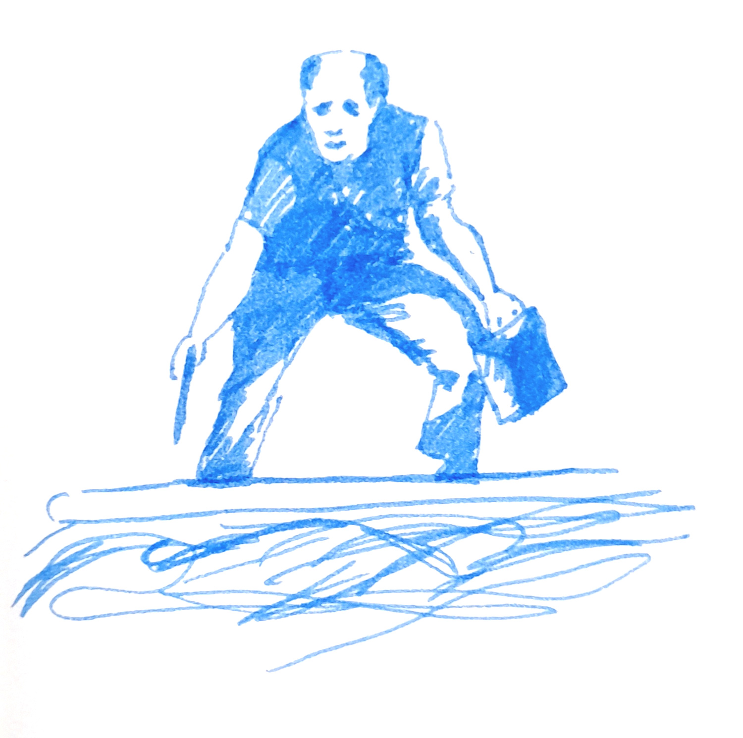 Dix autres minutes leur permettent de s'exercer sur un support format A5 afin de s'approprier médium et outils et de tracer leur signature sur le format A3 avec les outils de leur choix.