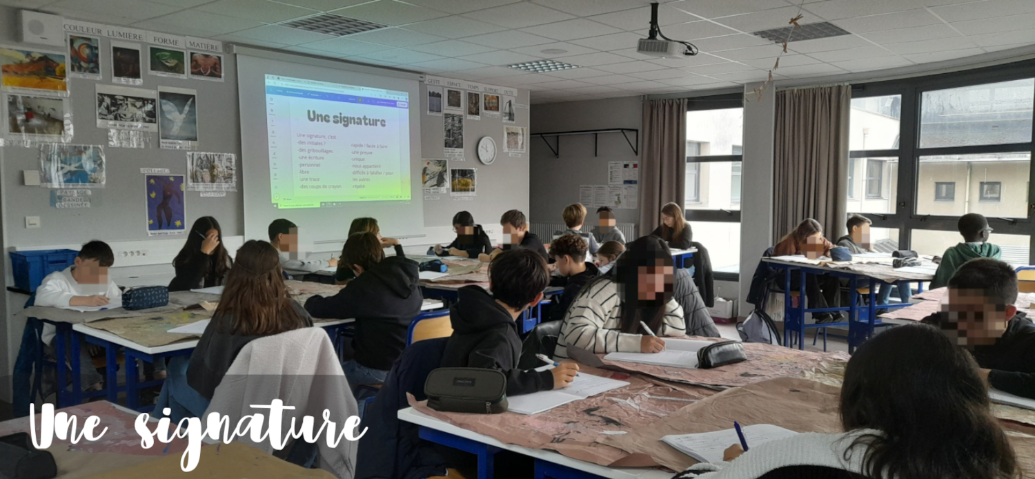 L'un d'eux demande "Et si on a déjà notre signature ?". Il leur est proposer de la travailler s'ils le souhaitent, ou bien d'en chercher une seconde qui serait leur signature d'artiste, peut-être même reliée à un pseudonyme.