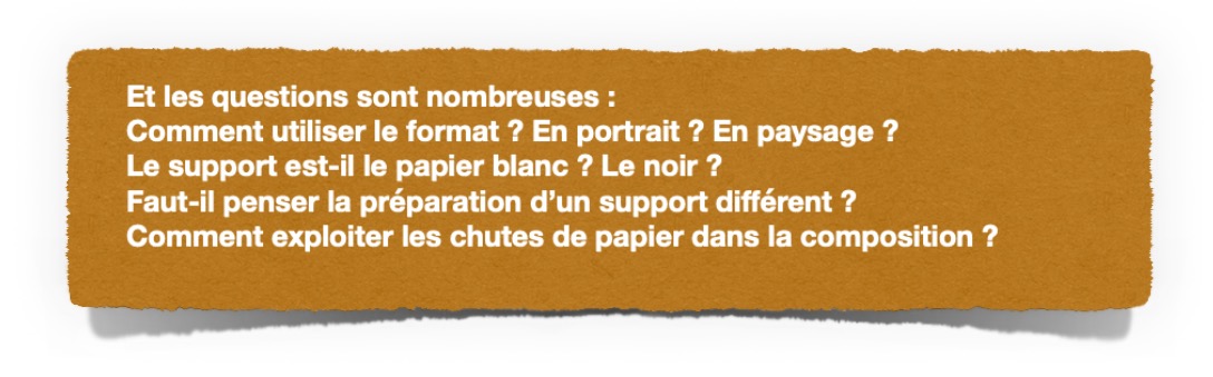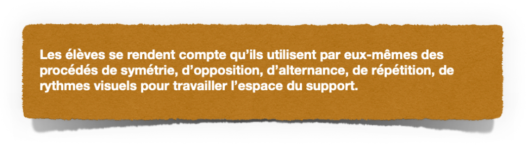 Cette séance est aussi une réaction à un constat qui me trouble, celui de productions parfois trop “vides”. La prise en compte de l’espace de tout un format n’est pas toujours une question évidente pour les élèves.