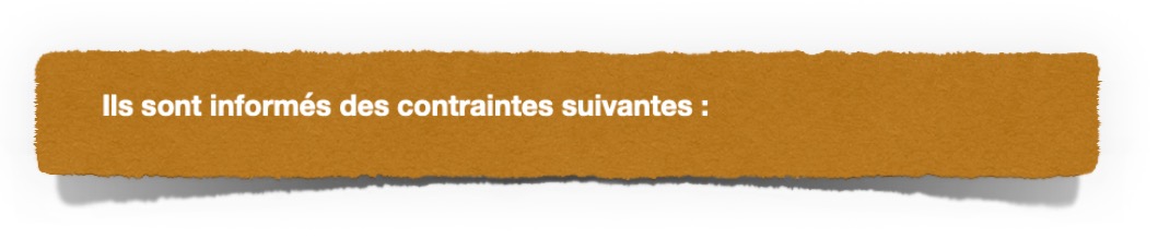 - Des ciseaux, de la colle et du ruban adhésif (qui doit rester discret) sont mis à disposition sur les tables.